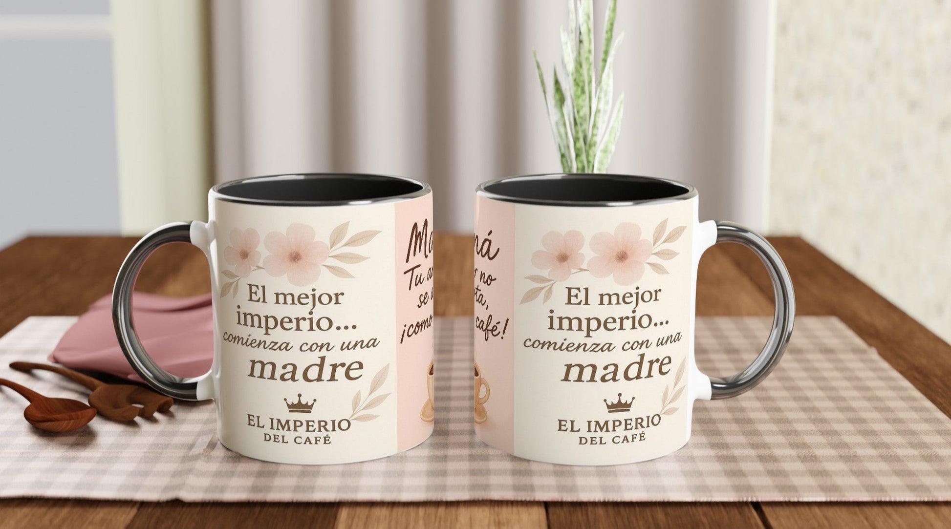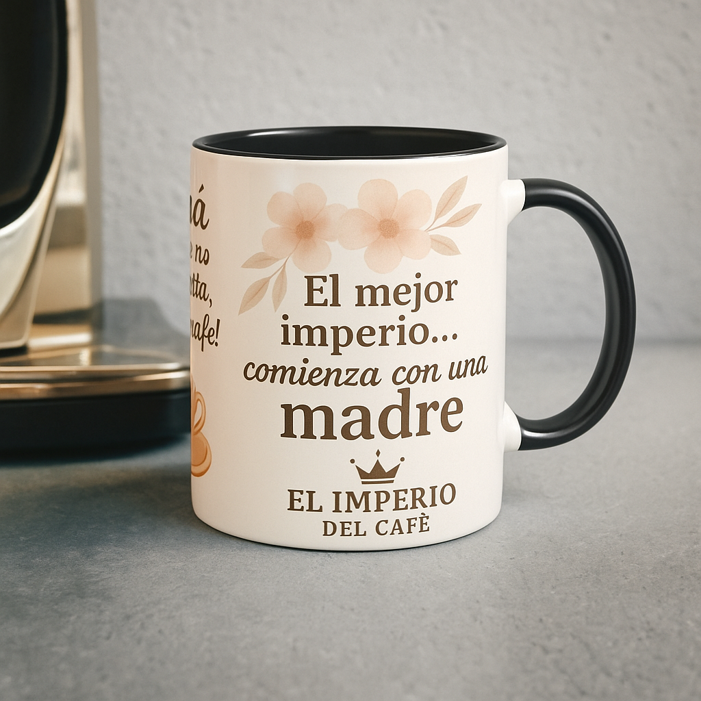 Sorprende a la reina de tu vida con esta preciosa taza personalizada 💖. Con un diseño cálido y delicado, esta taza rinde homenaje a esas mujeres increíbles que lo dan todo por su familia. El mensaje "El mejor imperio... comienza con una madre" no solo conmueve, sino que también celebra el amor incondicional y la fuerza de mamá 🌷👩👧👦.